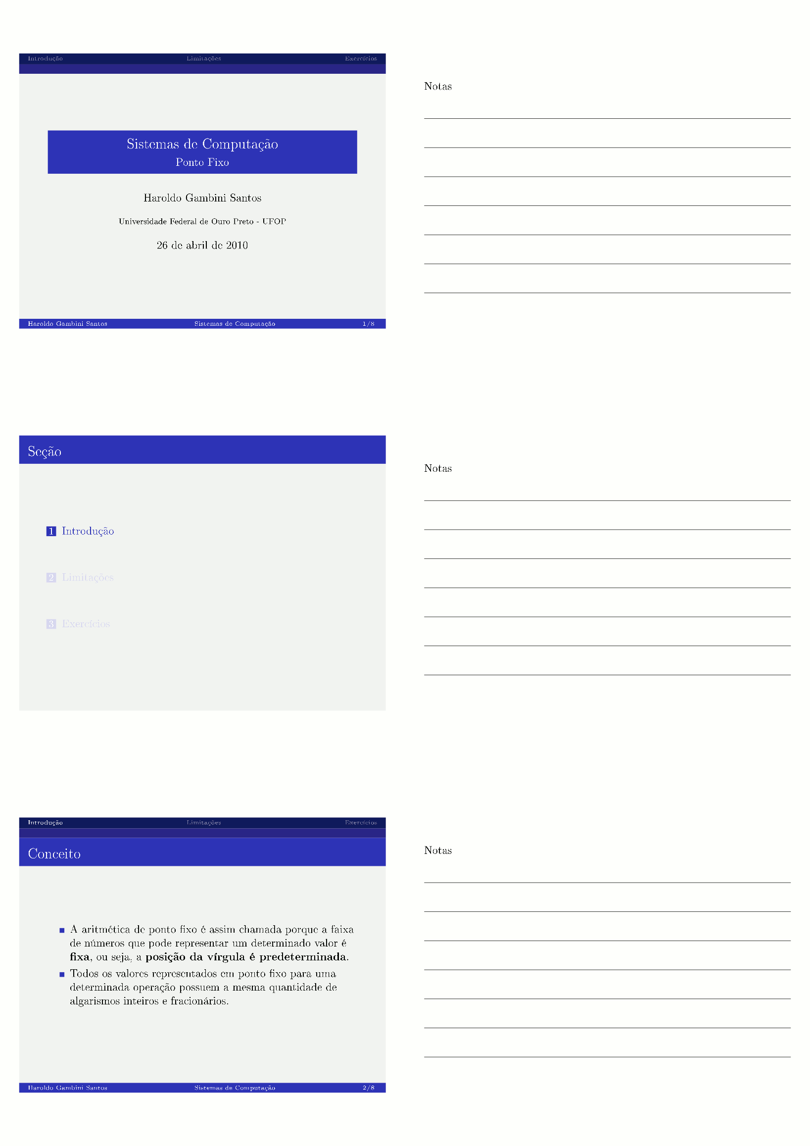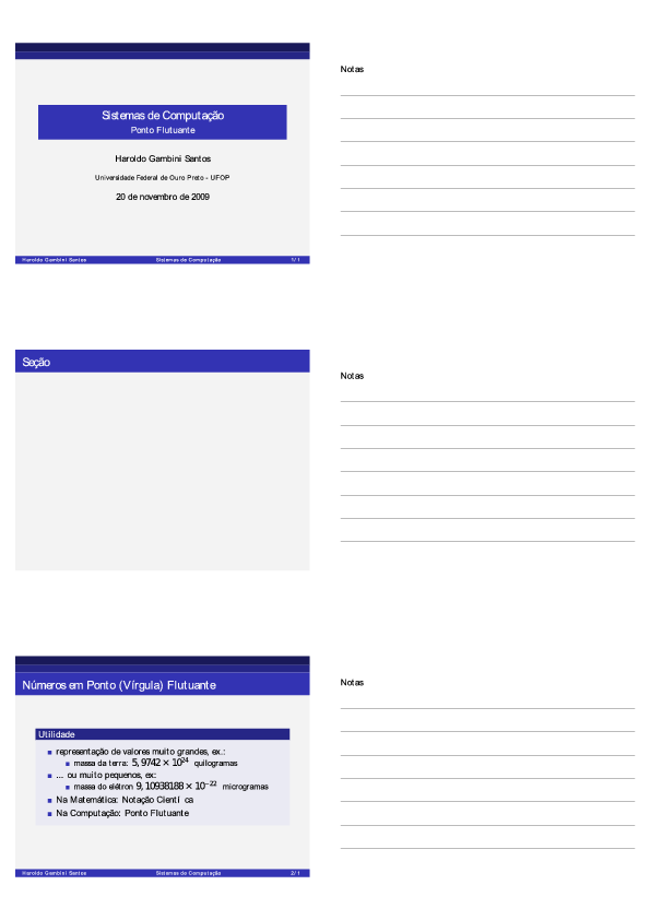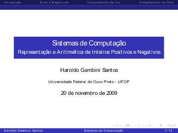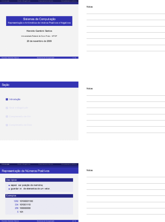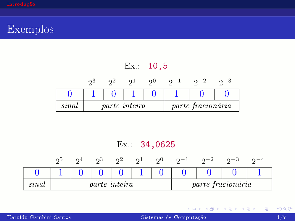 Sistemas de Numeração, Representação/Aritimética de Inteiros, Ponto Fixo e Ponto Flutuante: